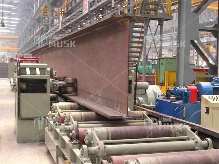 ● 主机部分由整体结构式主体,腹板扶正机构、左右上压轮调节机构、液压升降矫正传动系统及主机辊道组成。